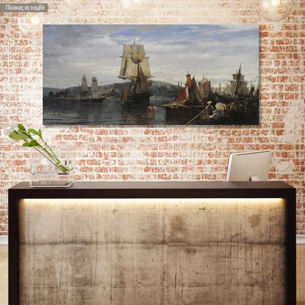 Πίνακας ζωγραφικής Έξω από το λιμάνι, Βολανάκης πανοραμικός