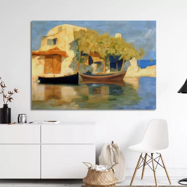 Πίνακας ζωγραφικής Ψαρόσπιτο με βάρκες, Οικονόμου Μ.