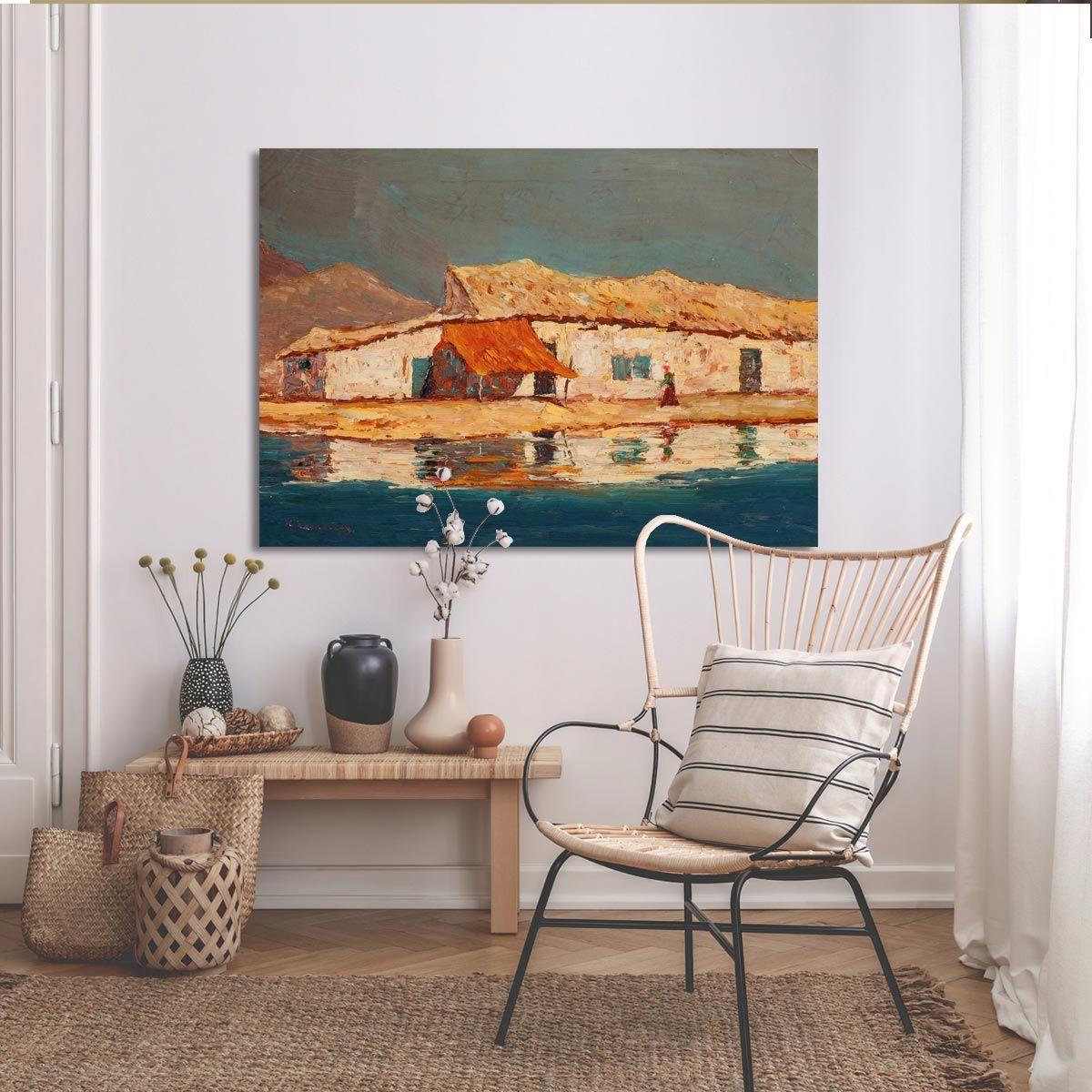 Πίνακας ζωγραφικής Σπίτι γέρου ψαρά κοντά στο νερό, Οικονόμου Μ.
