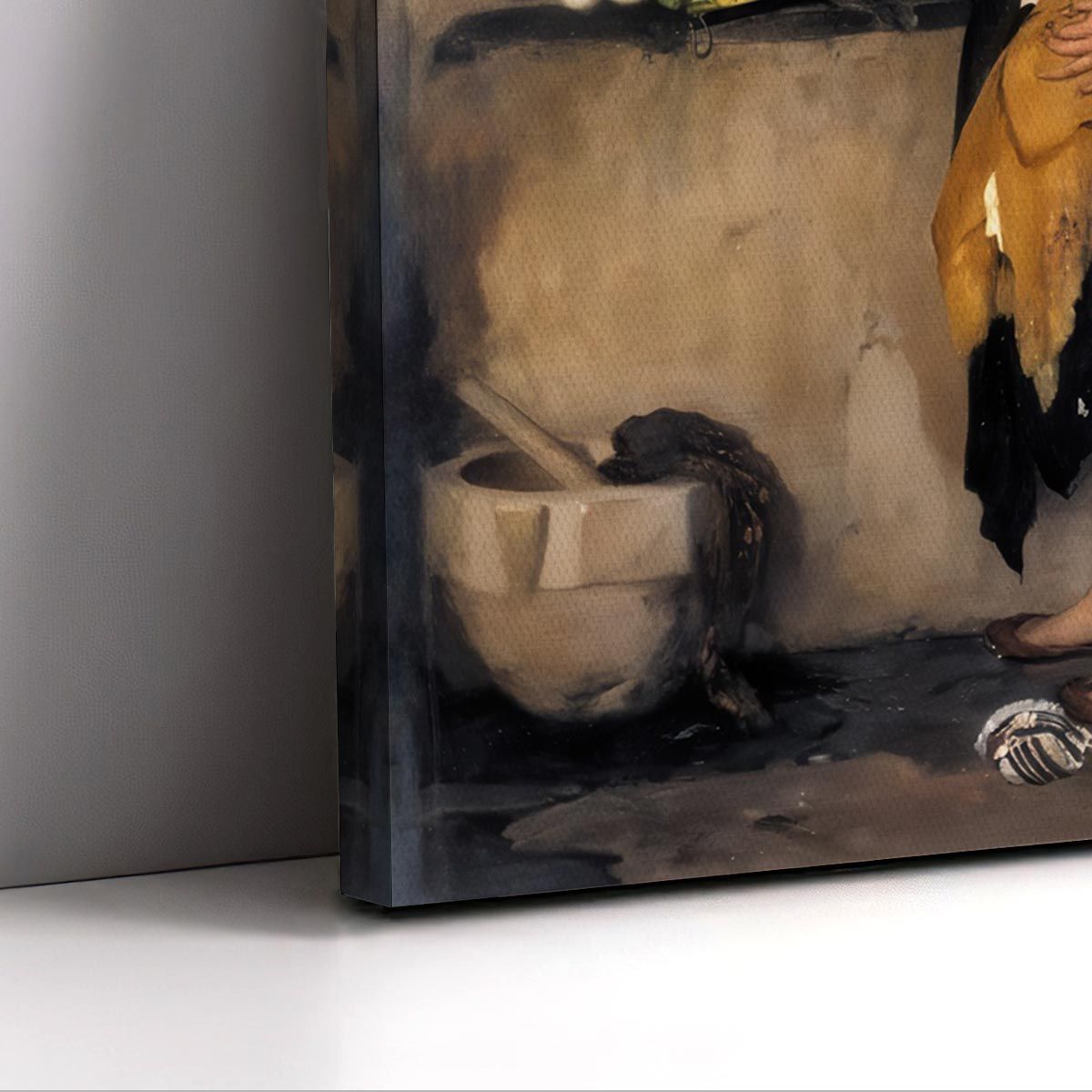 Κλασικός πίνακας σε καμβά με παραδοσιακή σκηνή μαγειρείου και ζεστά χρώματα.
