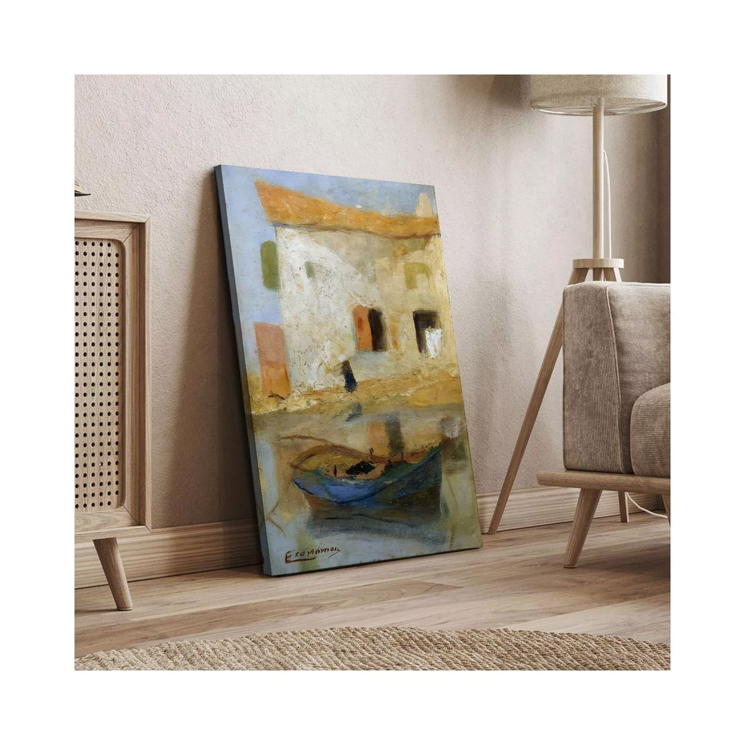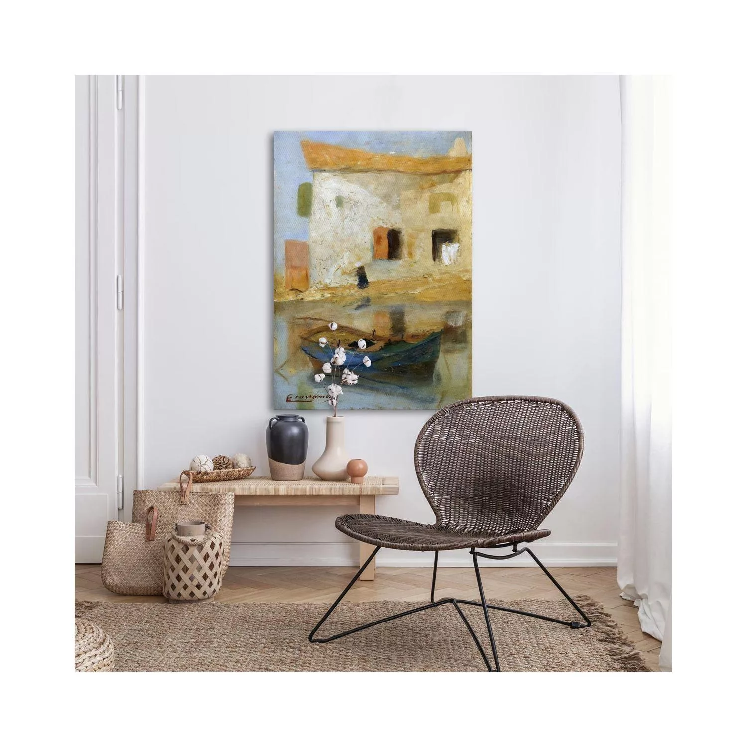 Πίνακας ζωγραφικής Βάρκα και σπίτι, Οικονόμου Μ, Οικονόμου Μ.