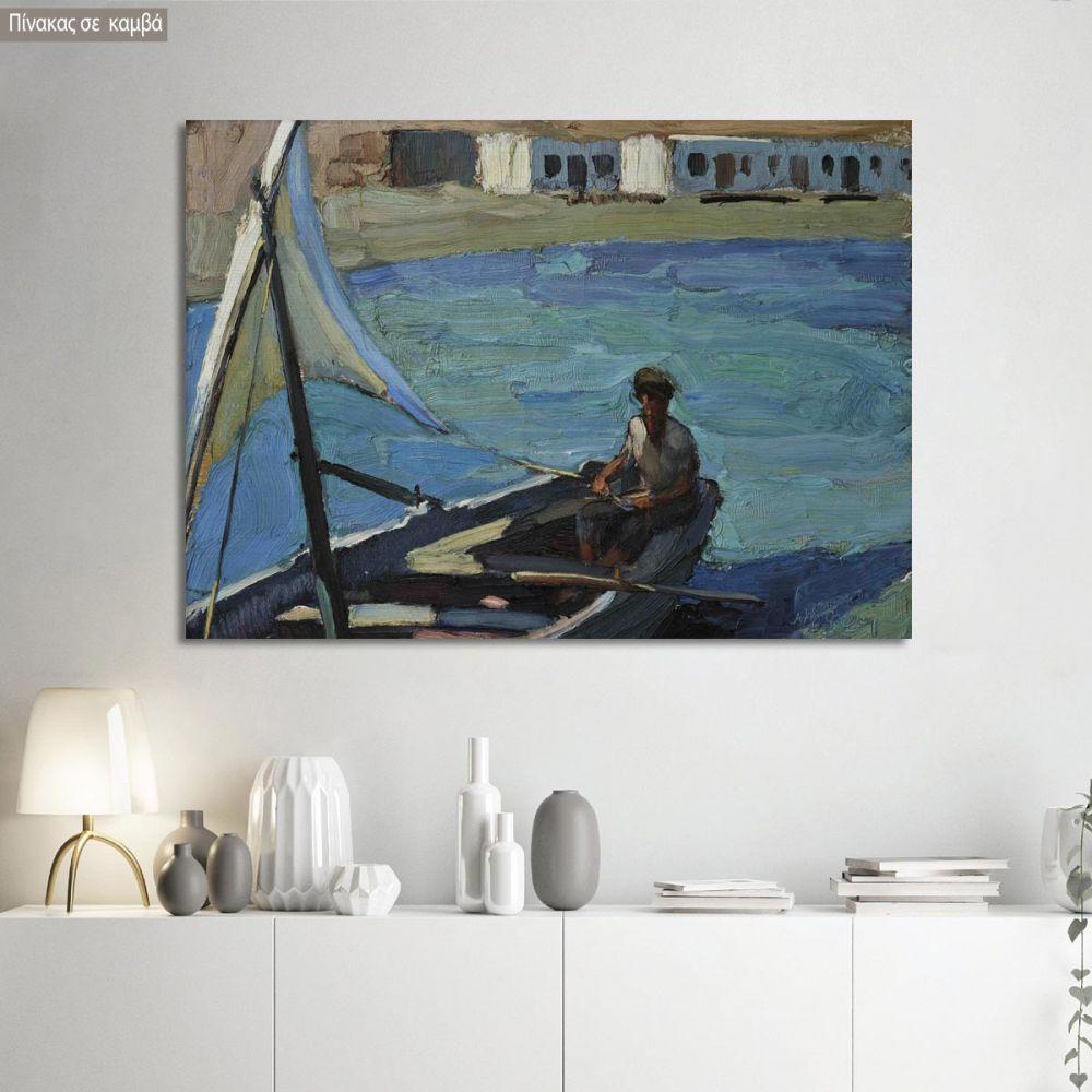 Πίνακας ζωγραφικής Βάρκα με πανί (Πάνορμος, Τήνος), Λύτρας Ν