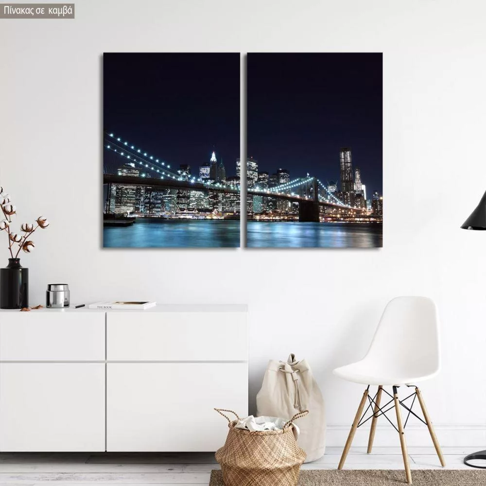Πίνακας σε καμβά Brooklyn bridge dark blue, δίπτυχος
