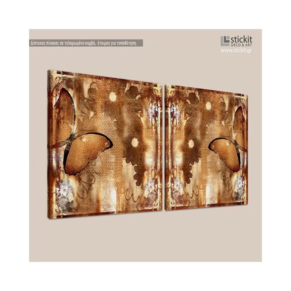 Πίνακας σε καμβά Butterflies mirrored, δίπτυχος