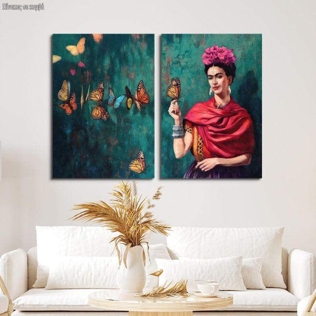 Πίνακας σε καμβά Butterfly Frida, δίπτυχος