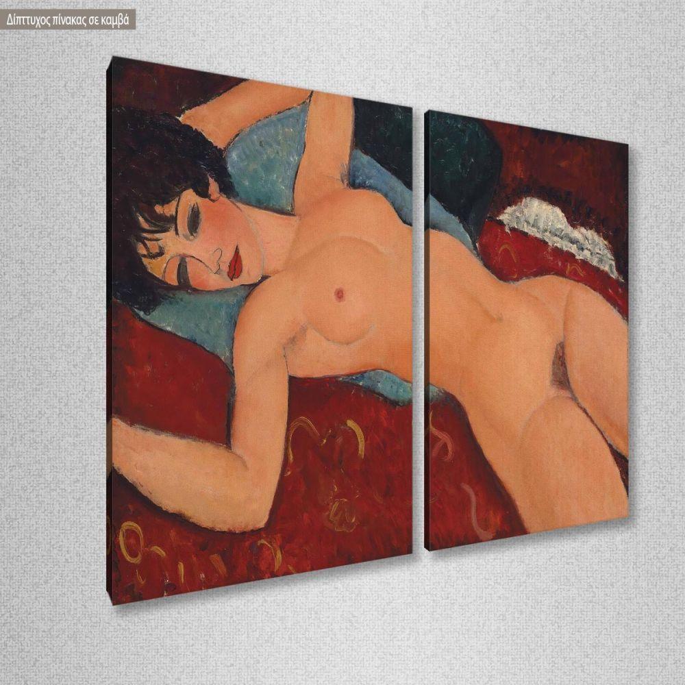 Πίνακας σε καμβά Reclining nude, Modigliani A. C, δίπτυχος