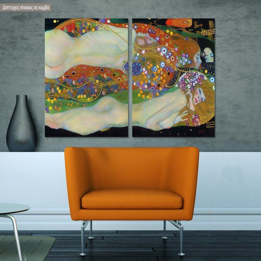 Πίνακας σε καμβά Water serpents II, Klimt G., δίπτυχος