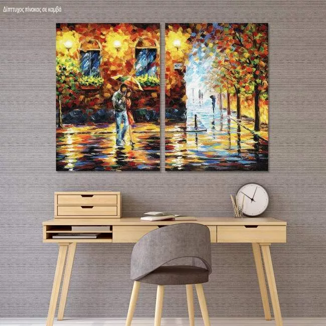 Πίνακας σε καμβά Couple under the rain, δίπτυχος