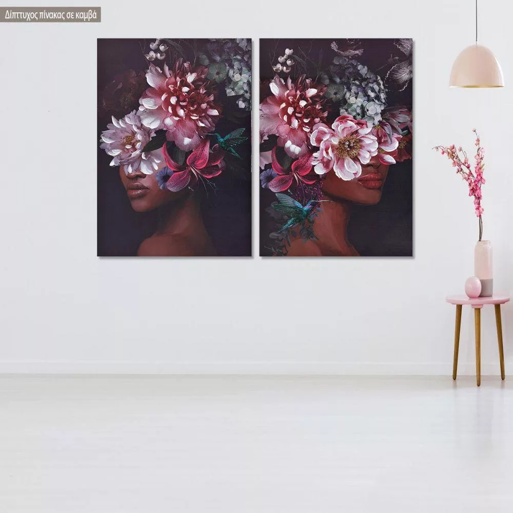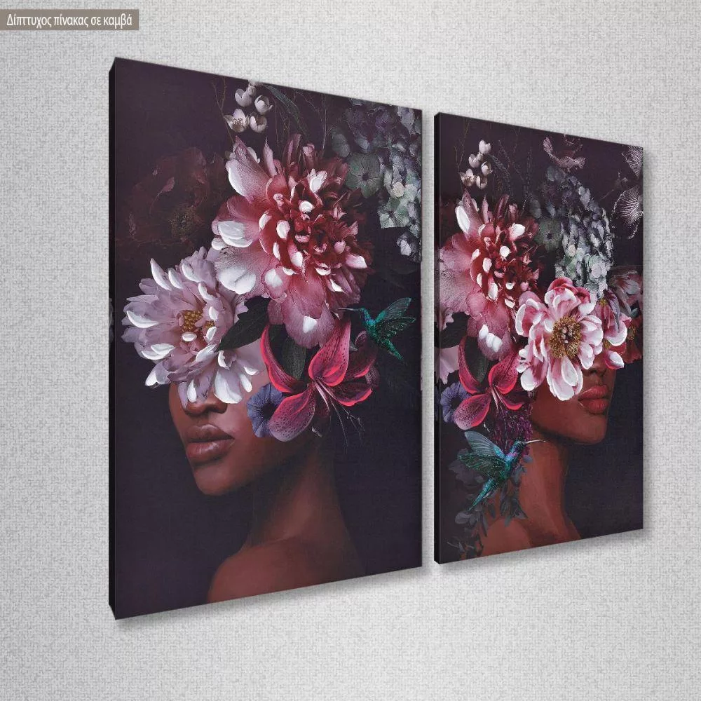 Πίνακας σε καμβά Flowered woman on purple, δίπτυχος