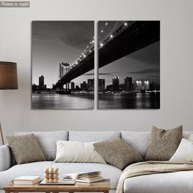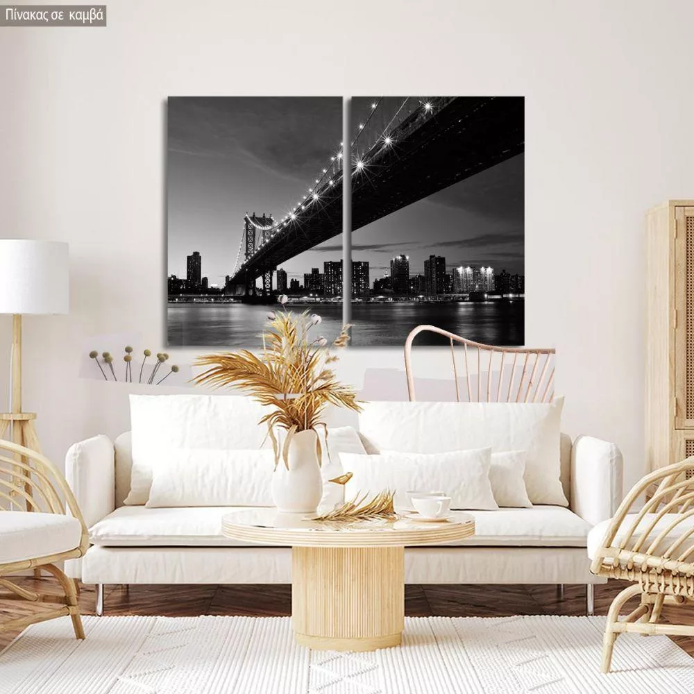 Πίνακας σε καμβά Manhattan bridge grayscale, δίπτυχος