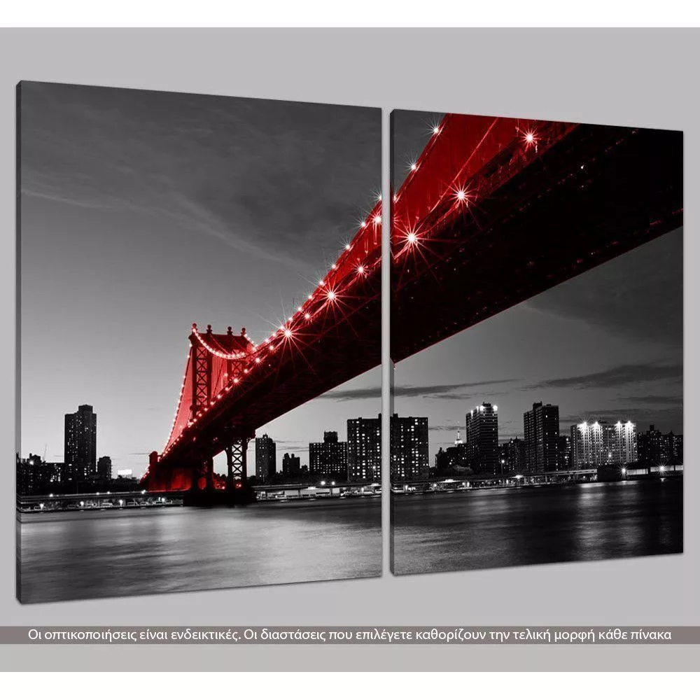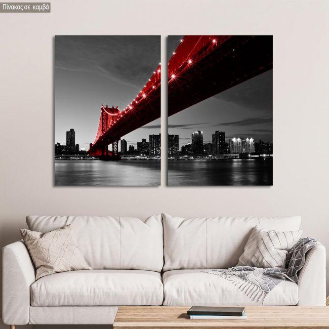 Πίνακας σε καμβά Red Manhattan bridge, δίπτυχος