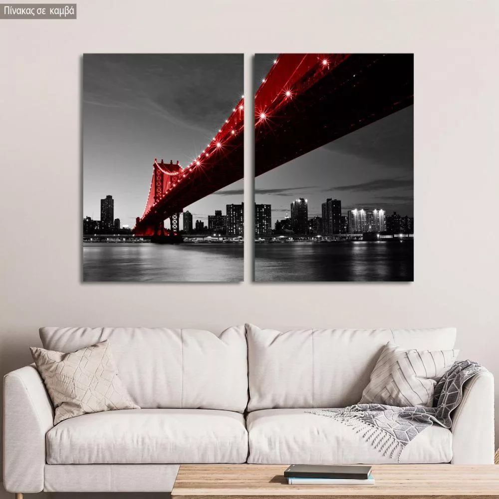 Red Manhattan bridge, δίπτυχος  πίνακας σε καμβά, κοντινό