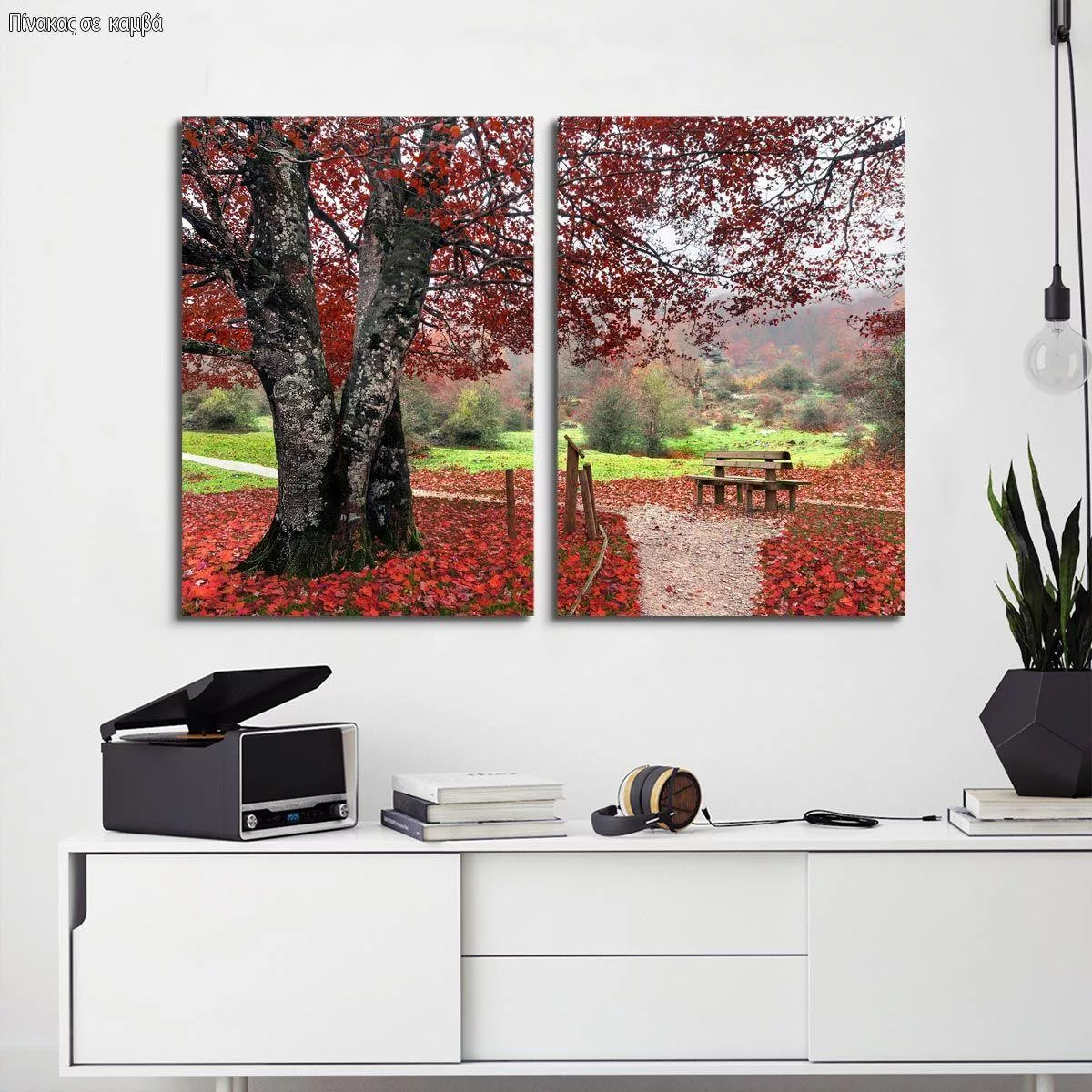 Πίνακας σε καμβά Red leaves, δίπτυχος