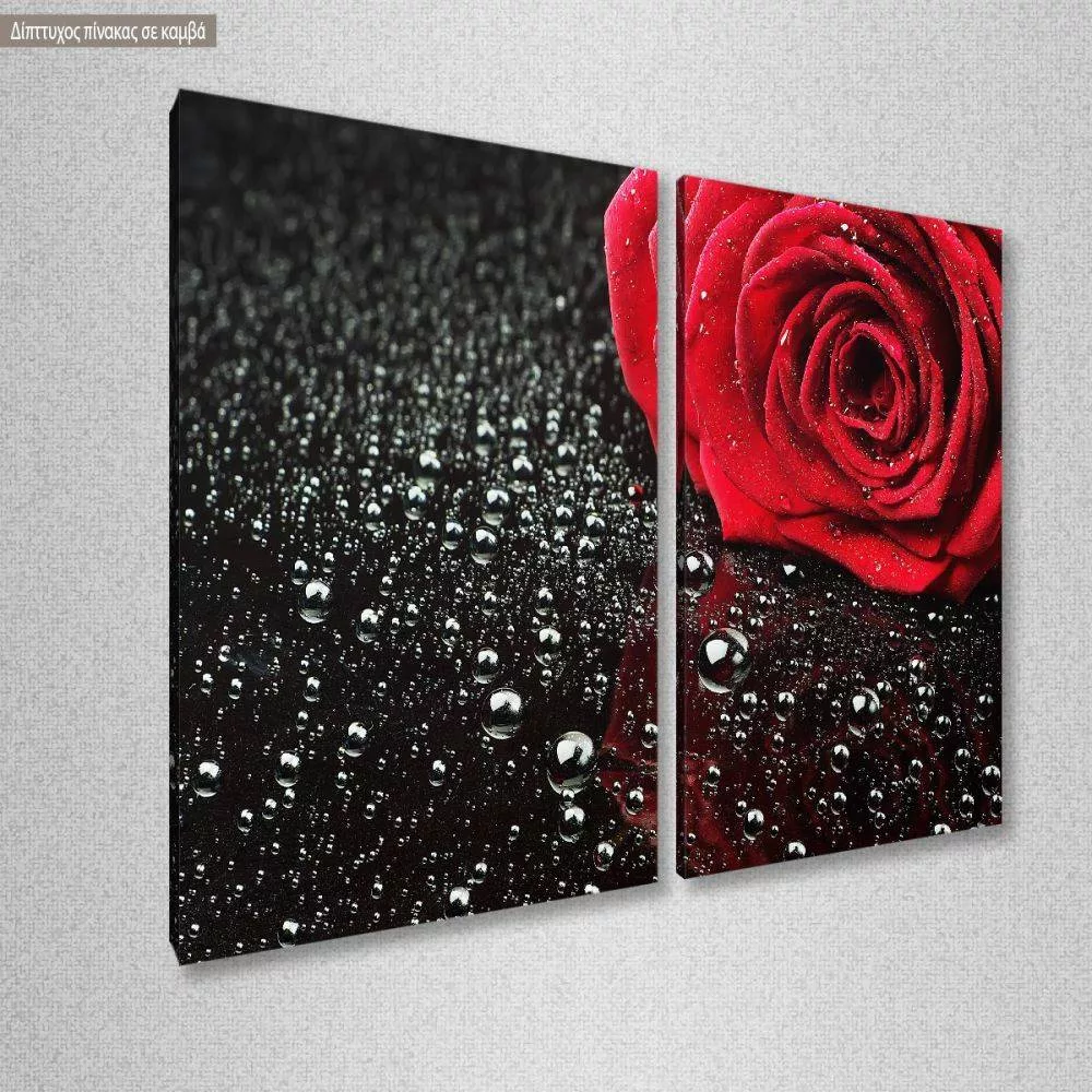Πίνακας σε καμβά Rose with water drops, δίπτυχος