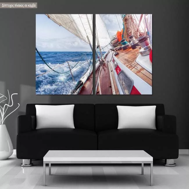 Πίνακας σε καμβά Sail boat navigating on the waves II, δίπτυχος