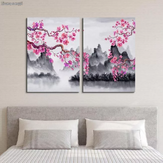Πίνακας σε καμβά Spring Japanese scenery, δίπτυχος