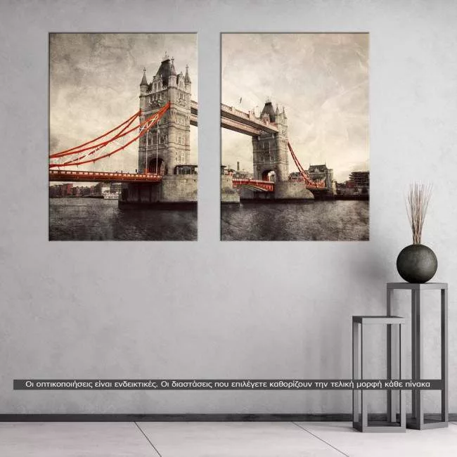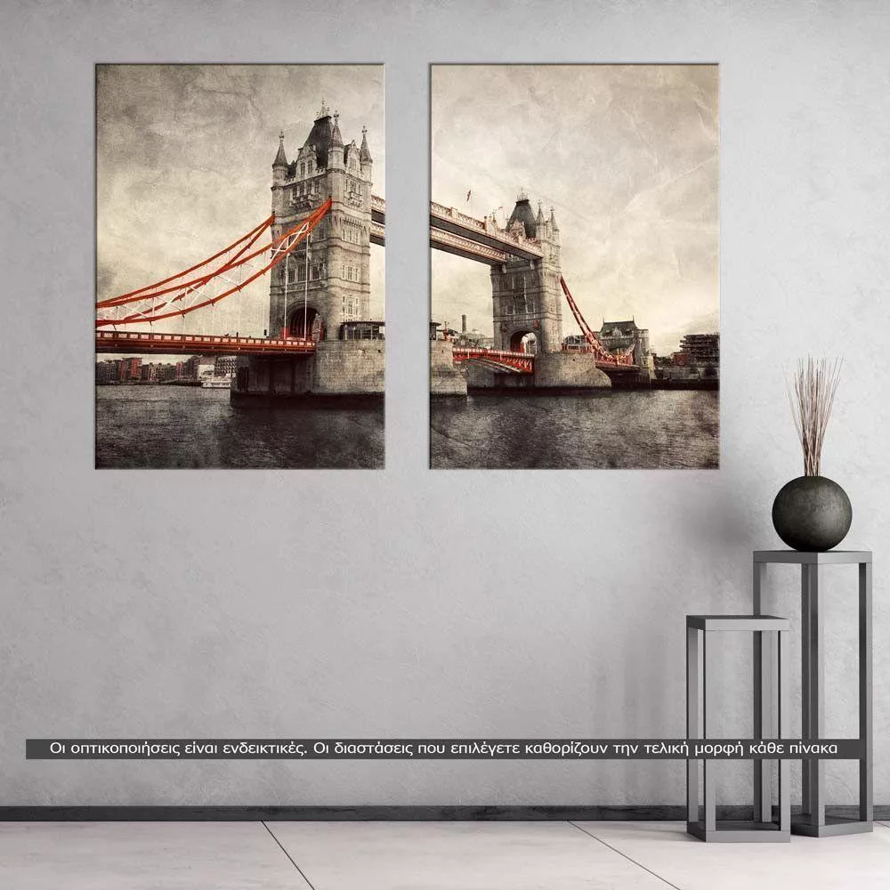 Πίνακας σε καμβά Tower bridge, vintage, δίπτυχος