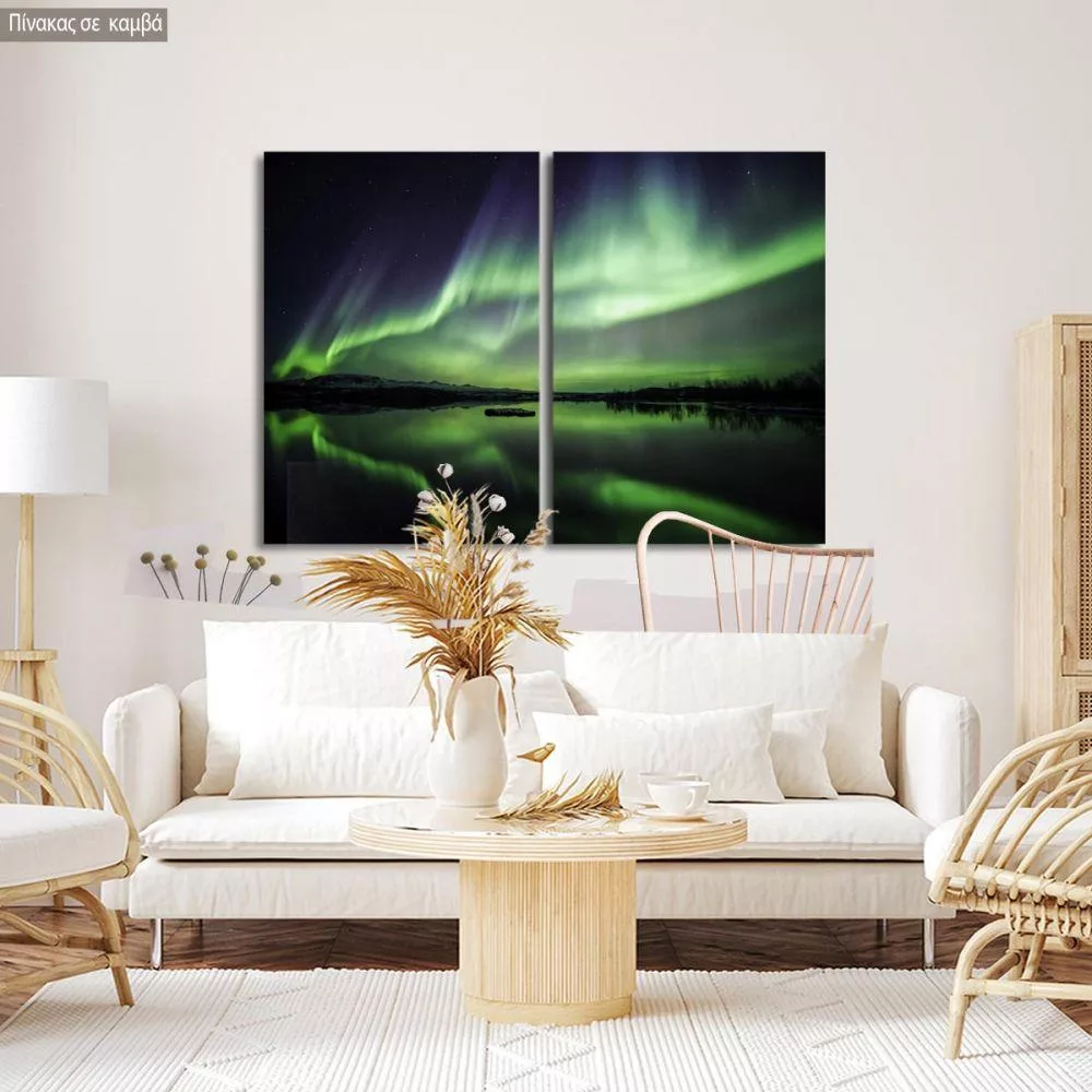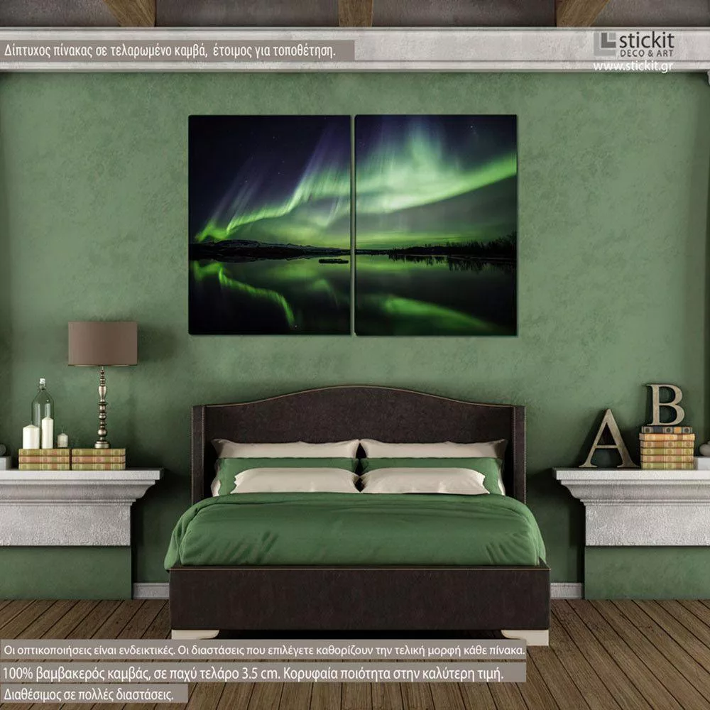 Πίνακας σε καμβά Βόρειο σέλας, δίπτυχος