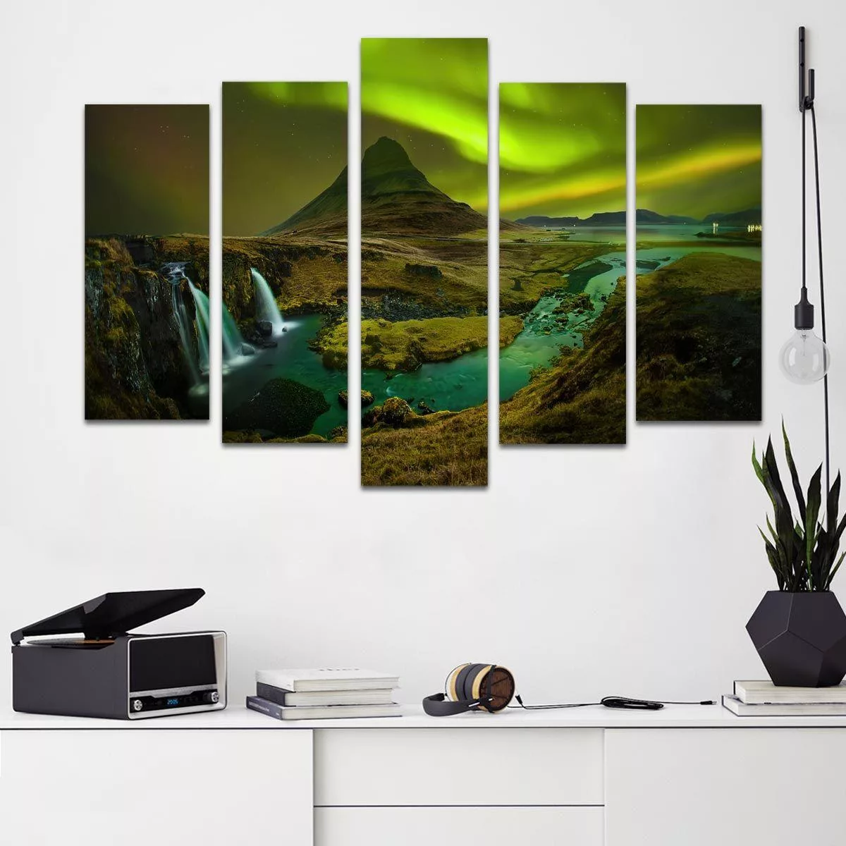 Πίνακας σε καμβά Aurora at Kirkjufel, πεντάπτυχος