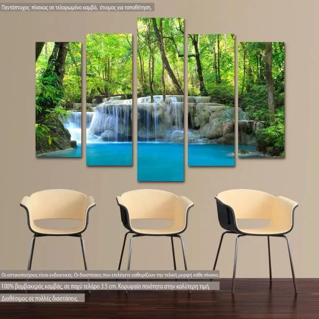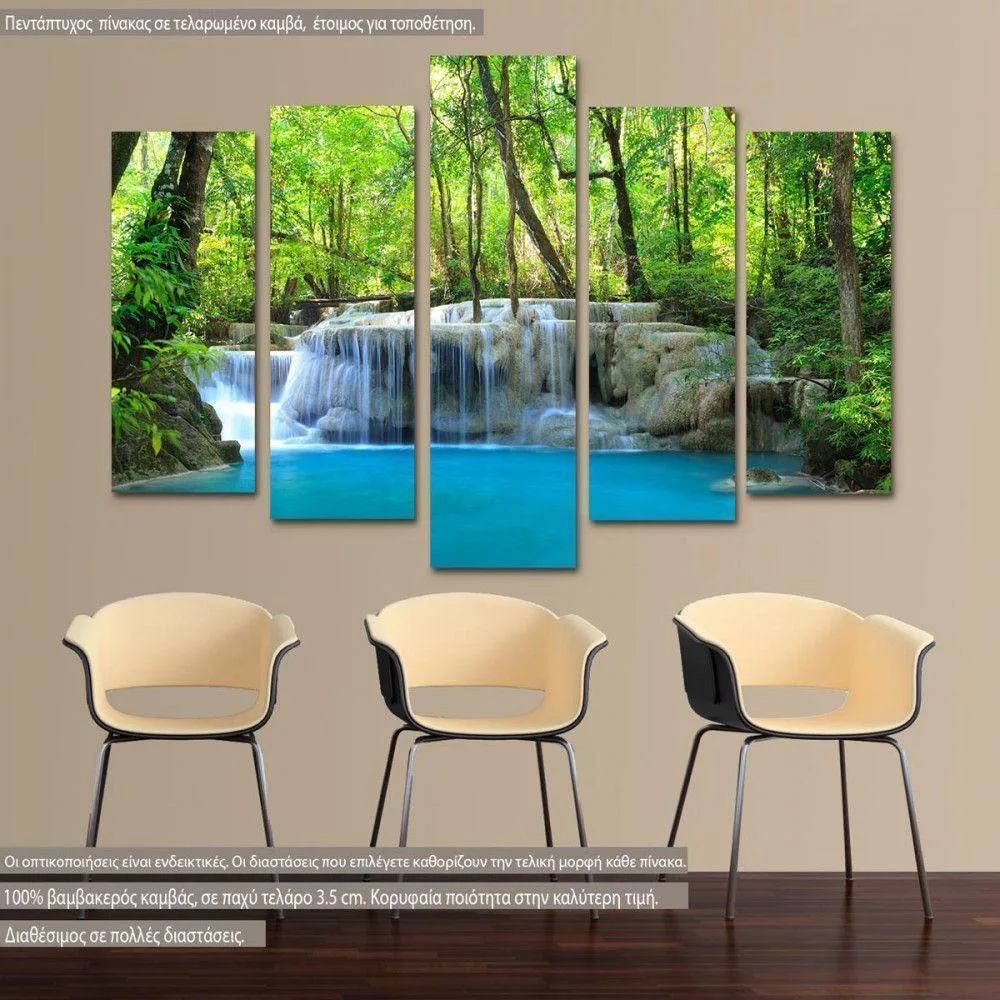 Πίνακας σε καμβά Deep forest waterfalls, πεντάπτυχος