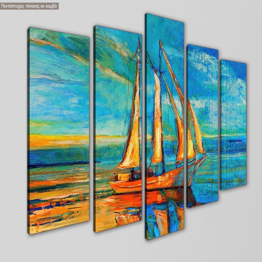 Πίνακας σε καμβά Sailing reflections, πεντάπτυχος