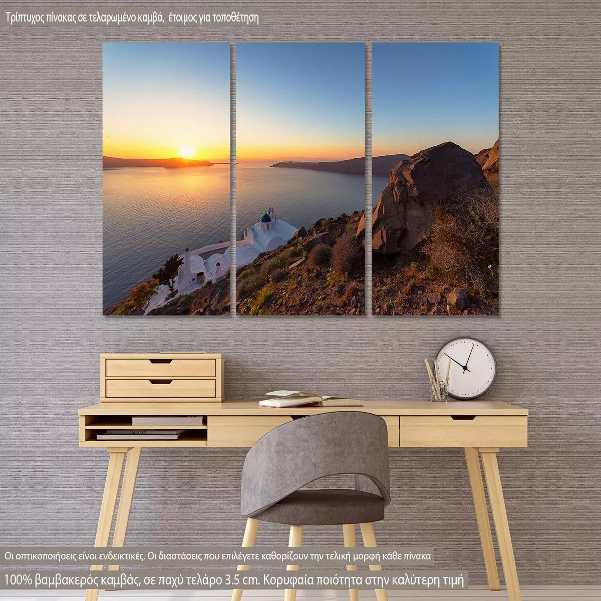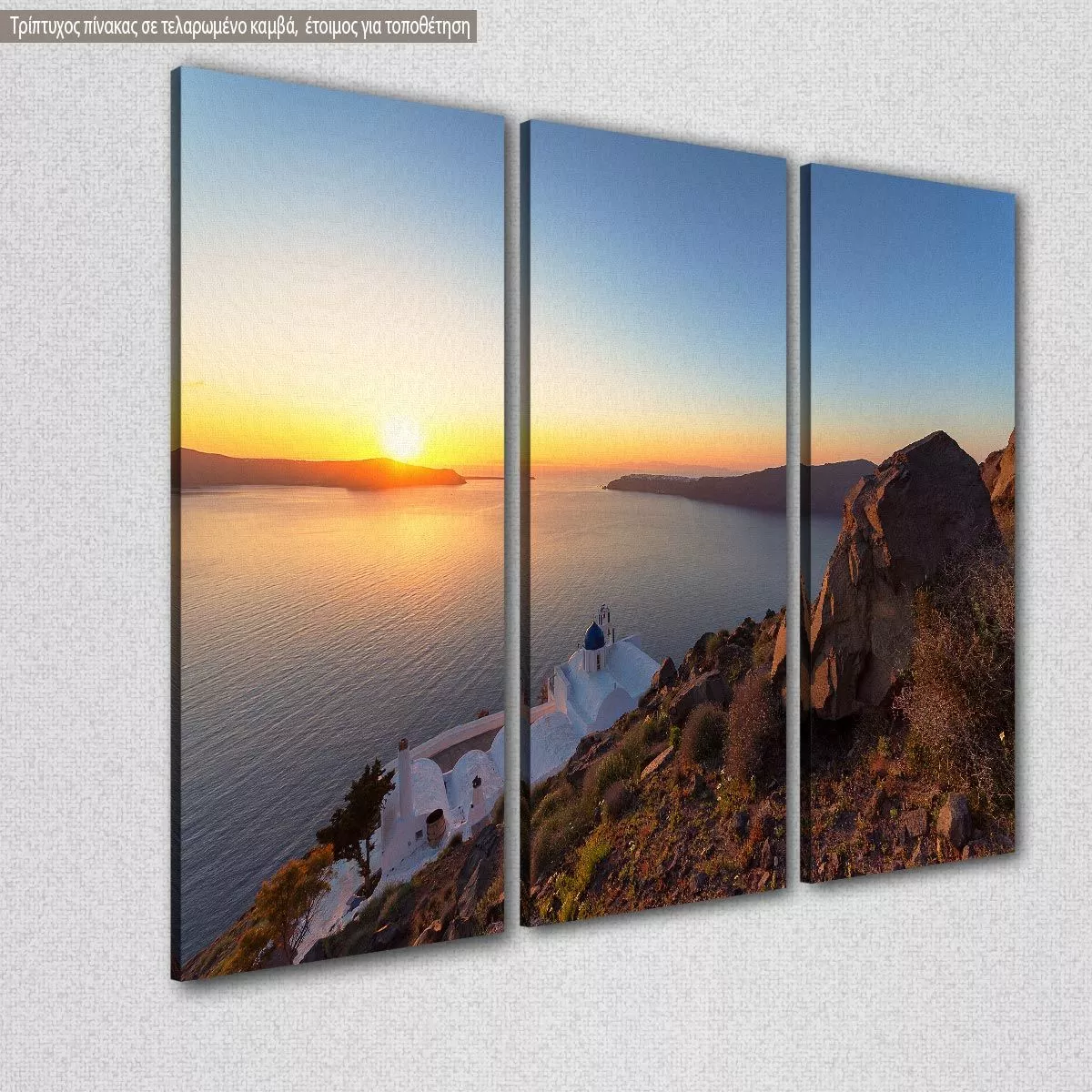 Πίνακας σε καμβά Amazing sunset, Santorini, τρίπτυχος