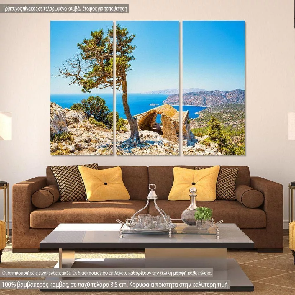 Πίνακας σε καμβά Ρόδος, Historic ruin and pine tree, Rhodes, τρίπτυχος