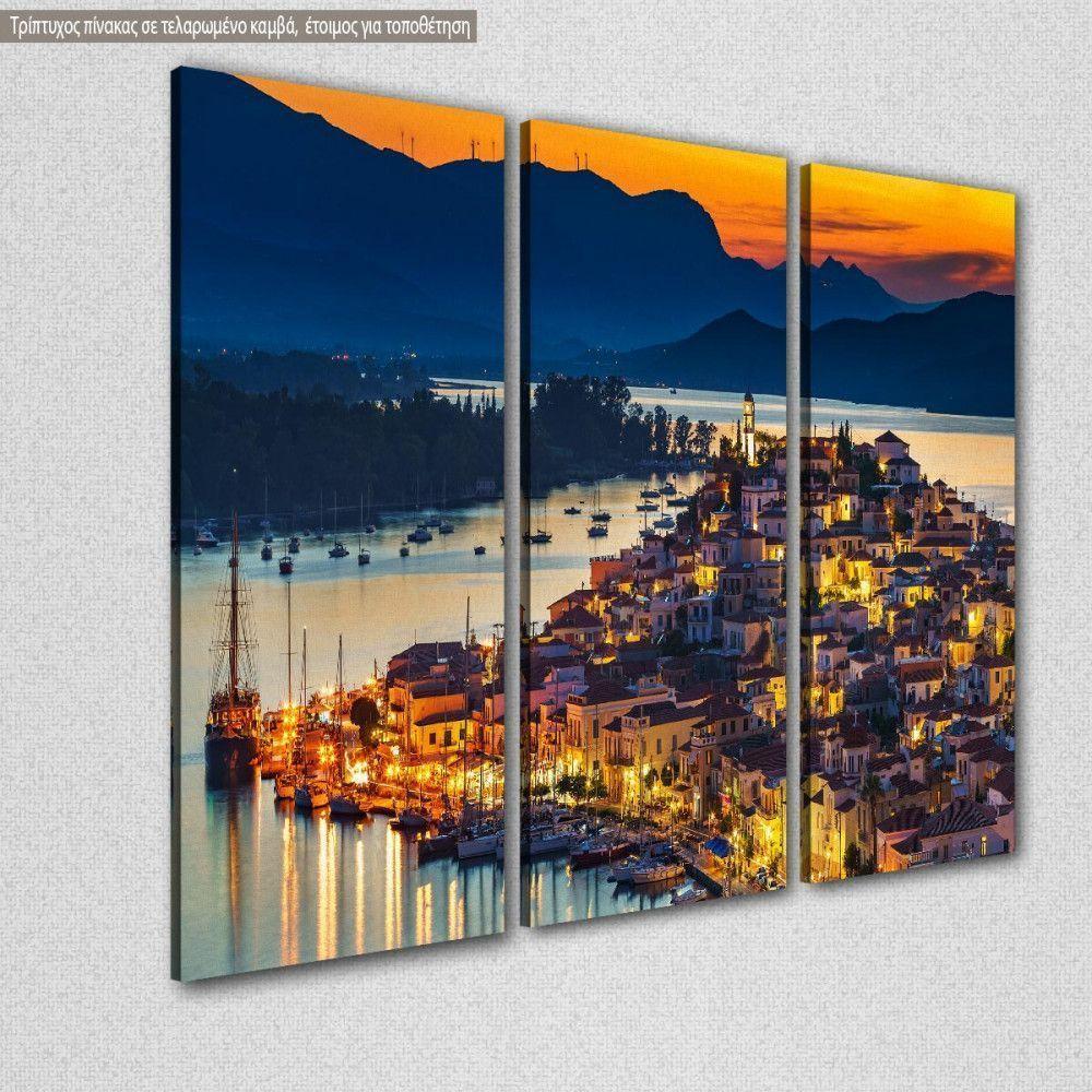 Πίνακας σε καμβά Νύχτα στον Πόρο, τρίπτυχος
