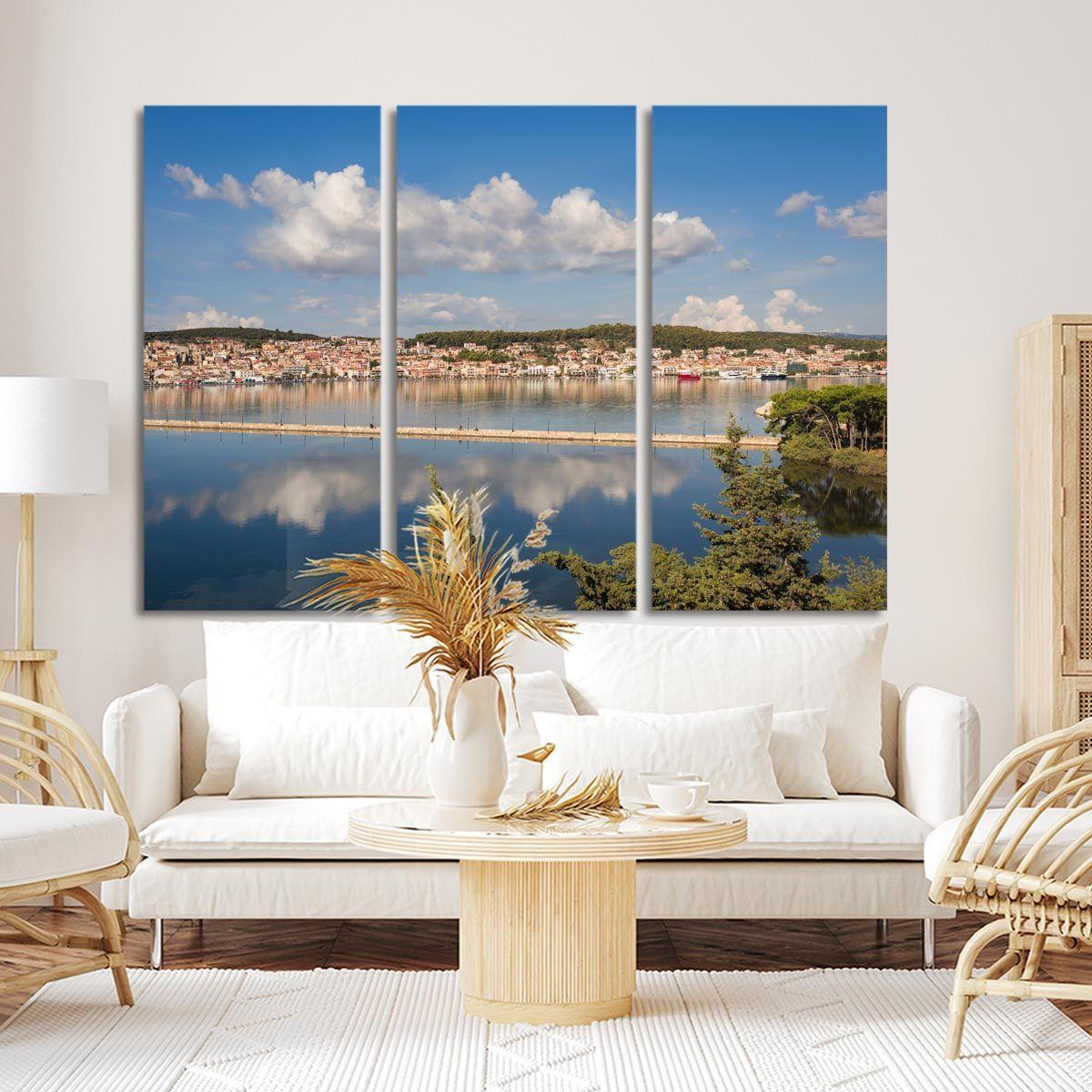Πίνακας σε καμβά Αργοστόλι, Sunset view of greek city of Argostoli, τρίπτυχος