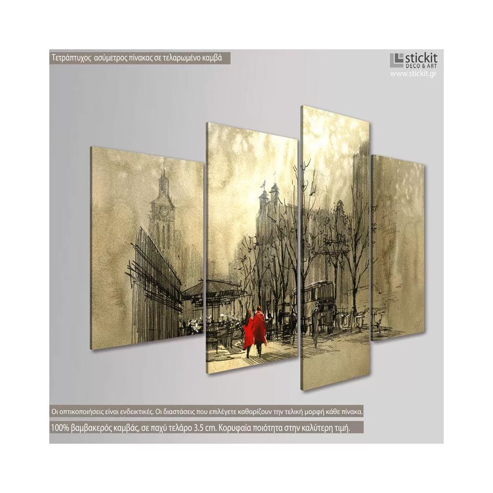 Πίνακας σε καμβά Couple in red, τετράπτυχος