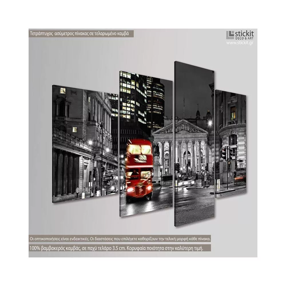 Πίνακας σε καμβά London bus, τετράπτυχος