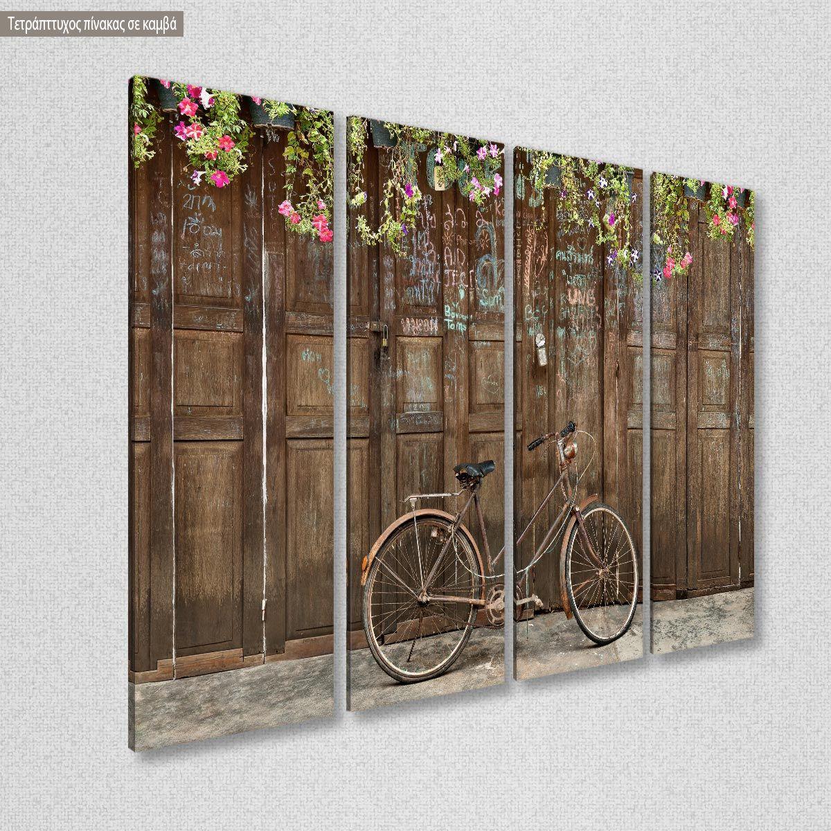 Πίνακας σε καμβά Old style rusty brown bicycle, τετράπτυχος