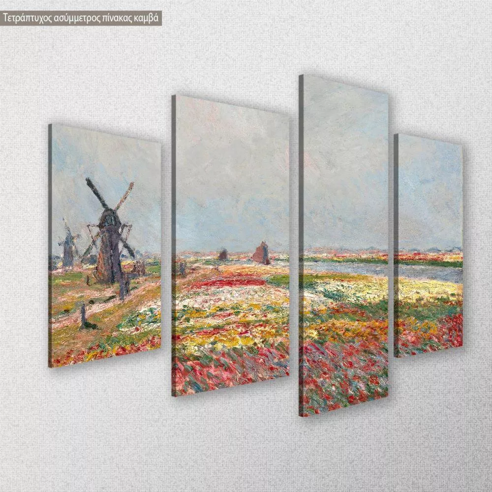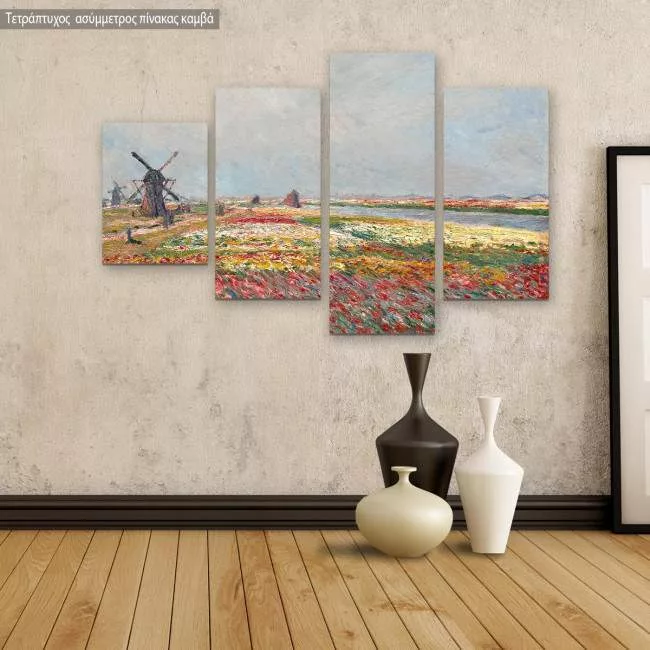 Πίνακας ζωγραφικής Tulip fields with windmills, Monet C, τετράπτυχος