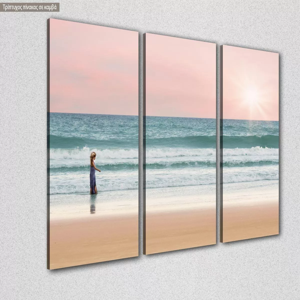 Πίνακας σε καμβά Child and the sea, τρίπτυχος