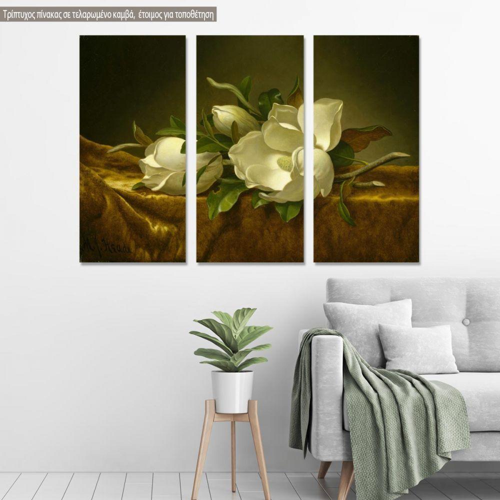 Πίνακας ζωγραφικής Magnolias on Gold Velvet Cloth, Martin Johnson Heade, τρίπτυχος