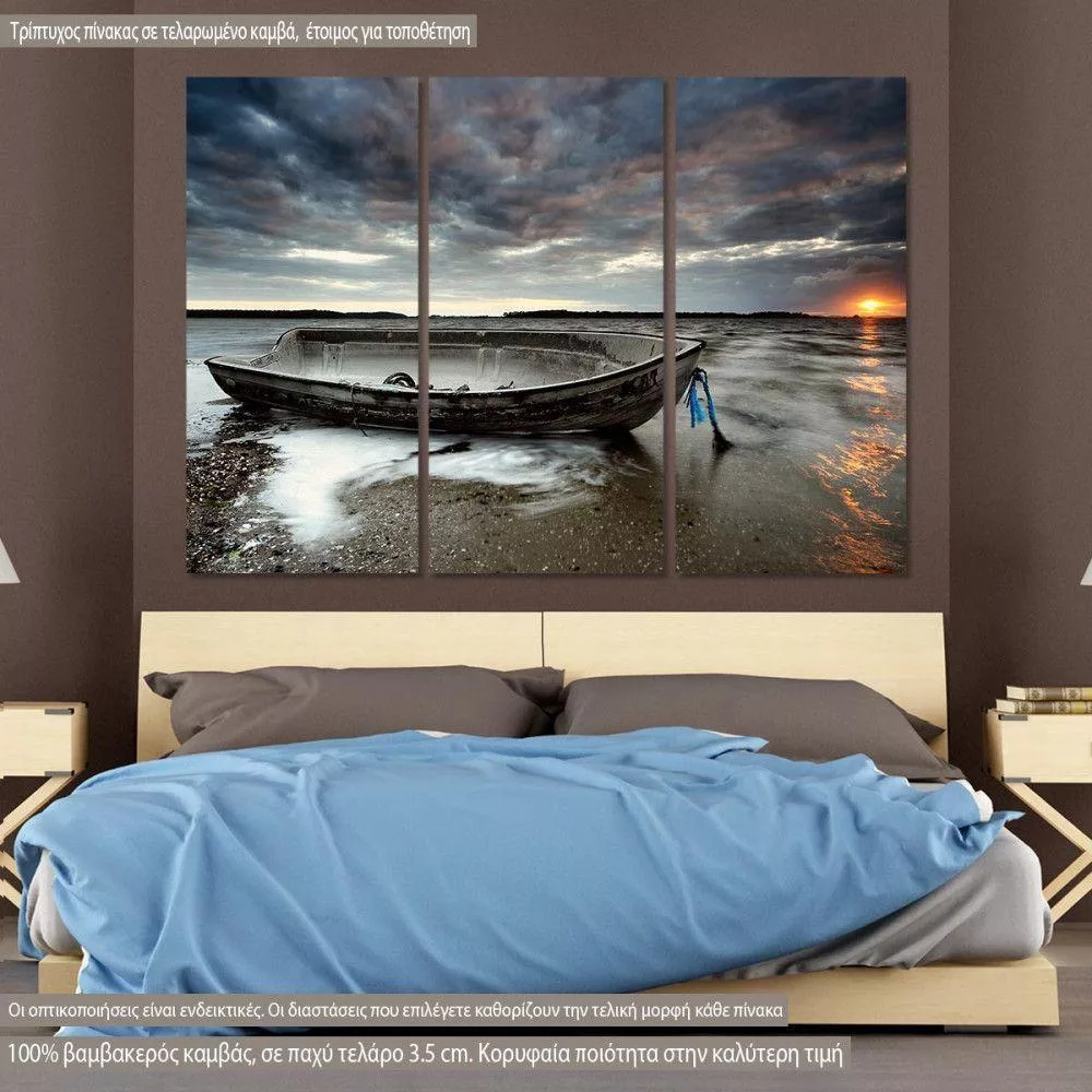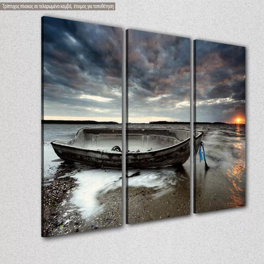 Πίνακας σε καμβά Abandoned boat, τρίπτυχος