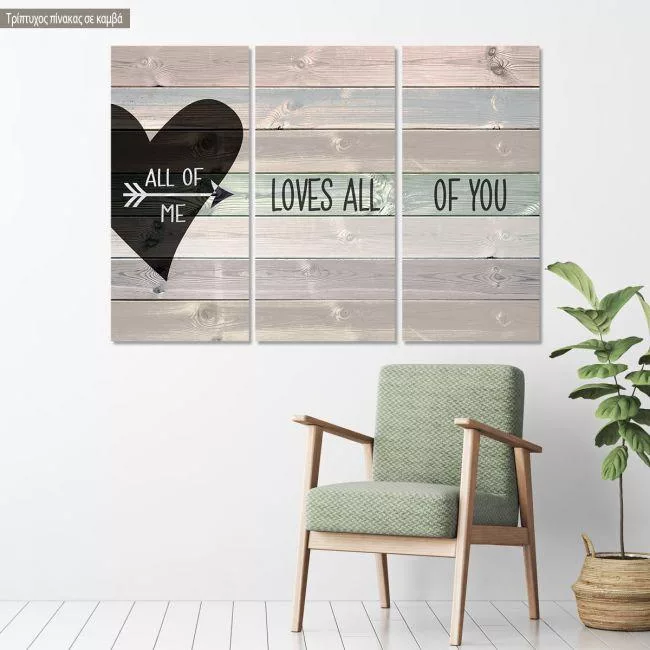 Πίνακας σε καμβά All of me loves all of you, τρίπτυχος