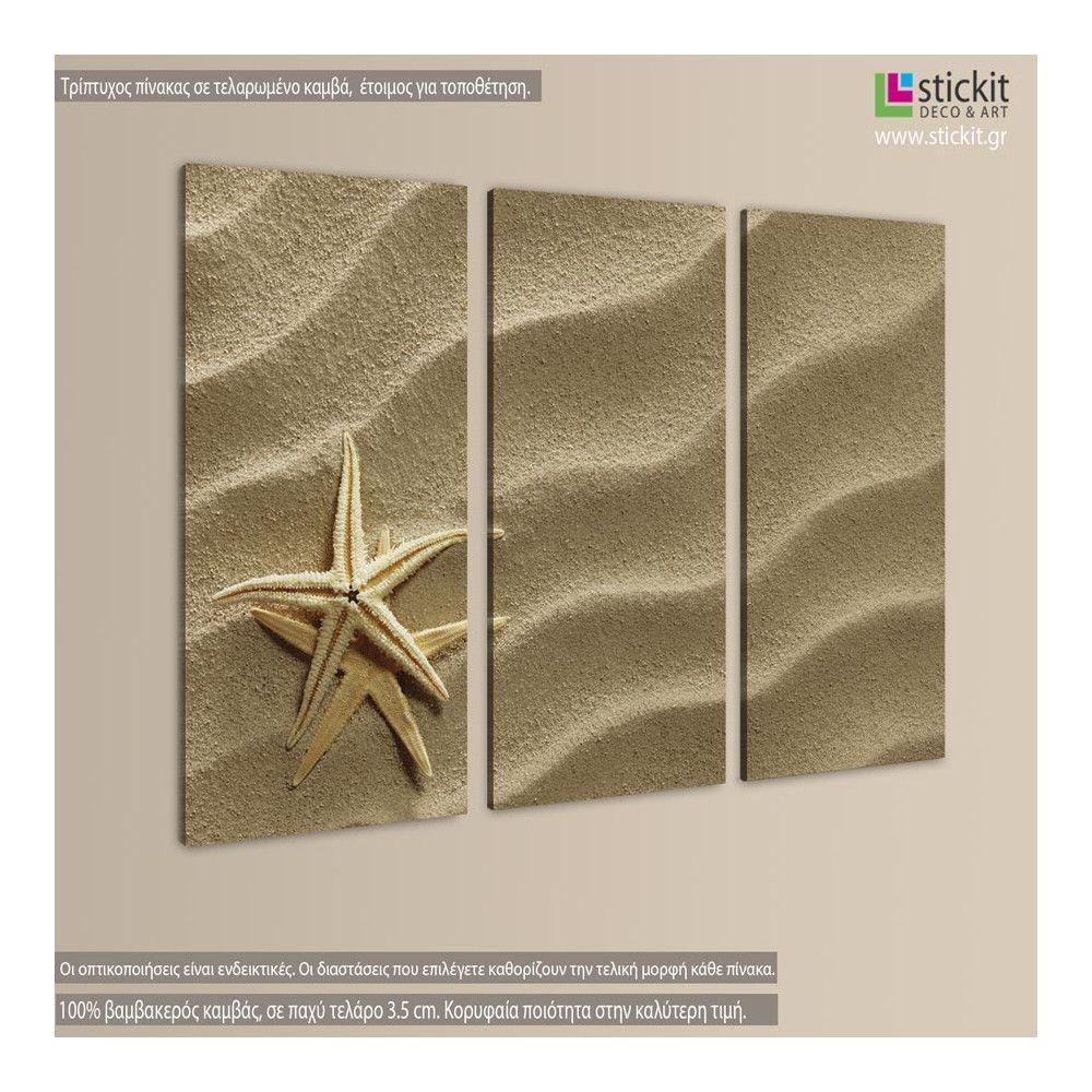 Πίνακας σε καμβά Αστερίες στην άμμο, τρίπτυχος