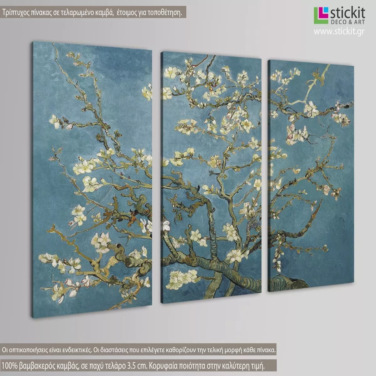 Πίνακας σε καμβά Blossoming almond tree (red), Vincent van Gogh, τρίπτυχος