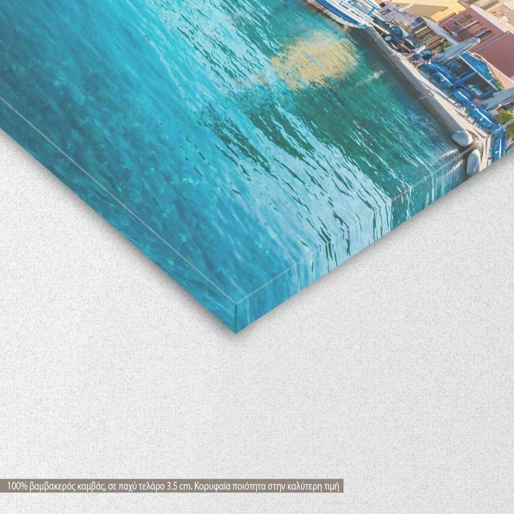 Πίνακας σε καμβά Χάλκη, Boats in port of Halki, τρίπτυχος