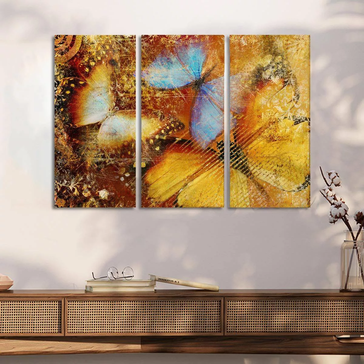 Πίνακας σε καμβά Butterfly I artistic, τρίπτυχος