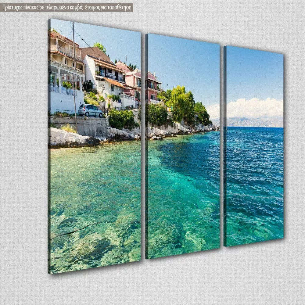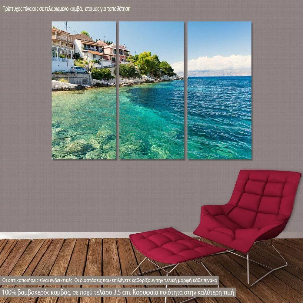 Πίνακας σε καμβά Κέρκυρα, Crystal clear water in Corfu island, τρίπτυχος