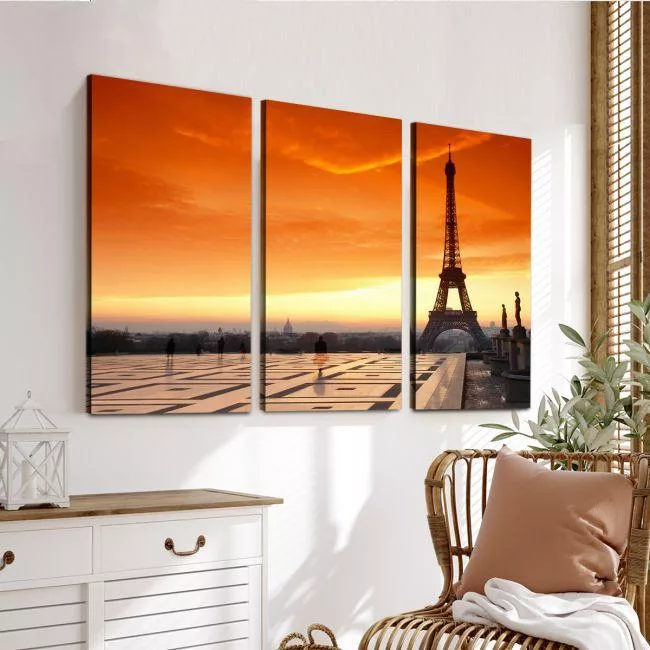 Πίνακας σε καμβά Eiffel sunset, τρίπτυχος