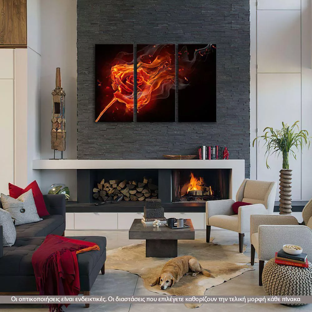 Πίνακας σε καμβά Φλεγόμενο τριαντάφυλλο, τρίπτυχος