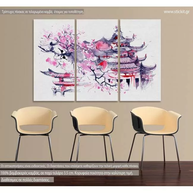 Πίνακας σε καμβά Japan watercolor, τρίπτυχος