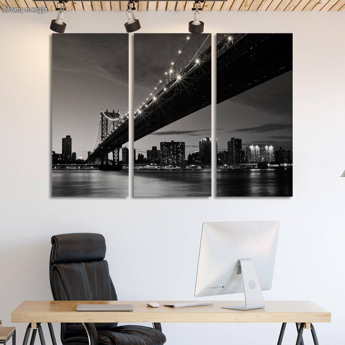Πίνακας σε καμβά Manhattan bridge grayscale, τρίπτυχος