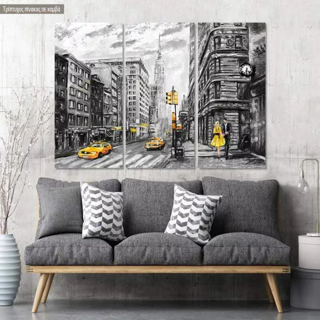 Πίνακας σε καμβά New York, b&w, τρίπτυχος