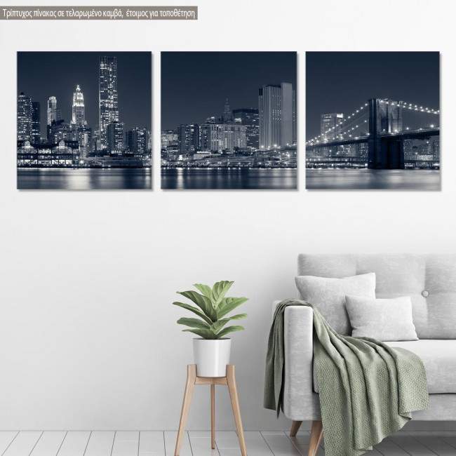 Πίνακας σε καμβά City and bridge, τρίπτυχος πανοραμικός