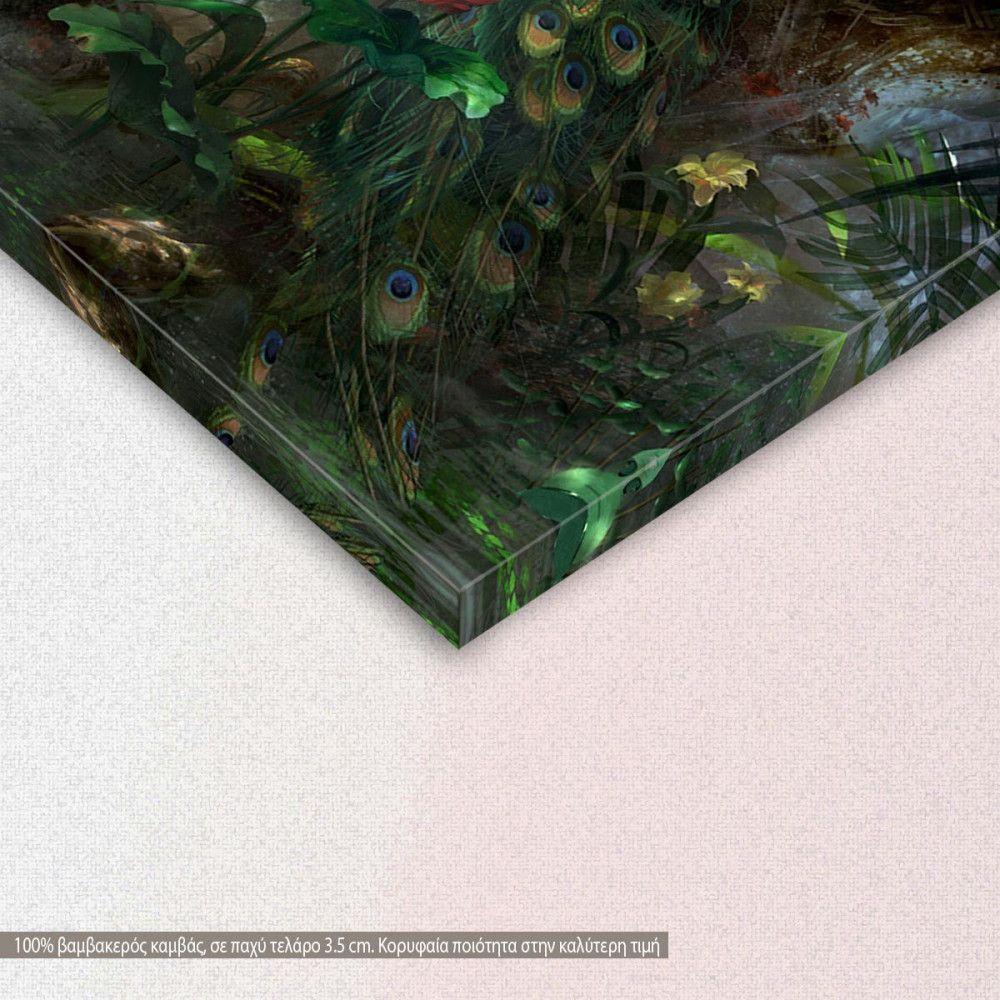 Πίνακας σε καμβά Peackocks in the forest, τρίπτυχος