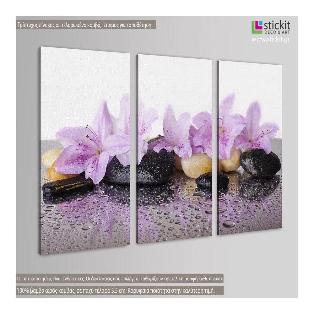 Πίνακας σε καμβά Pink flowers, τρίπτυχος